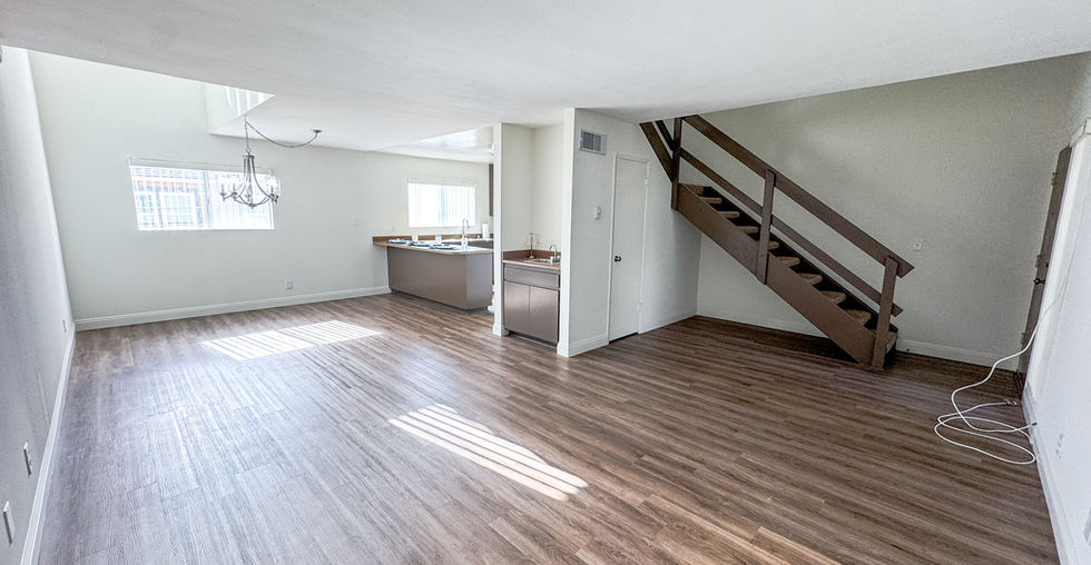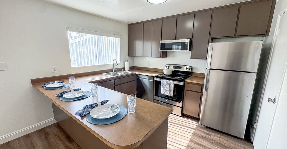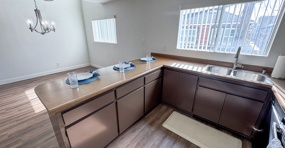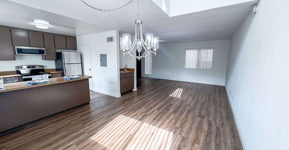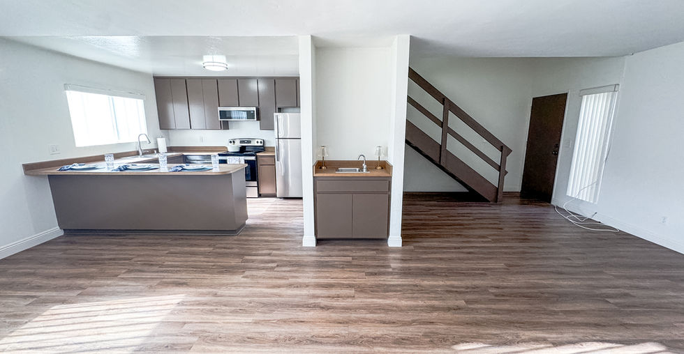 Enter this roomy 2-bedroom, 1-bathroom townhome-style apartment and enjoy the privacy of having no neighbors above or below you! This well-maintained building offers parking on the ground floor, with the apartment located on the 2nd floor. Step into the spacious living area, featuring a coat closet and under-stair storage. Beyond the living room, there's a wet bar and a separate dining area with high ceilings that open to the loft bedroom above. The kitchen boasts freshly painted cabinets, a large bar that seats four, and all stainless steel appliances, along with a walk-in pantry next to the refrigerator. Upstairs, you'll find carpeted bedrooms, each with wall-to-wall closets, and a shared bathroom equipped with ample storage, dual sinks, and a tub/shower combination.