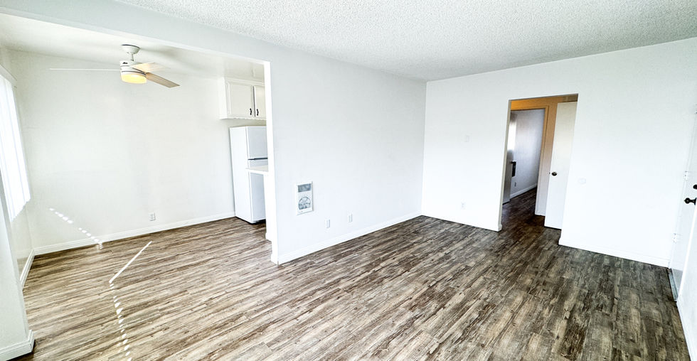 Light and airy two bedroom with 1.5 bathrooms! Freshly painted, upper level unit with close proximity to Main Street and the beach! Walk into a spacious living room with large windows to take in the ocean air. Attached is a separate dining space with ceiling fan, kitchen with bar counter, and plenty of cabinets for storage! The hallway includes the powder room, two bedrooms almost equal in size each with their own ceiling fan, and a full bathroom. Hard surface flooring throughout, with garages located underneath!
