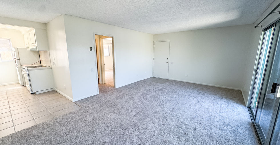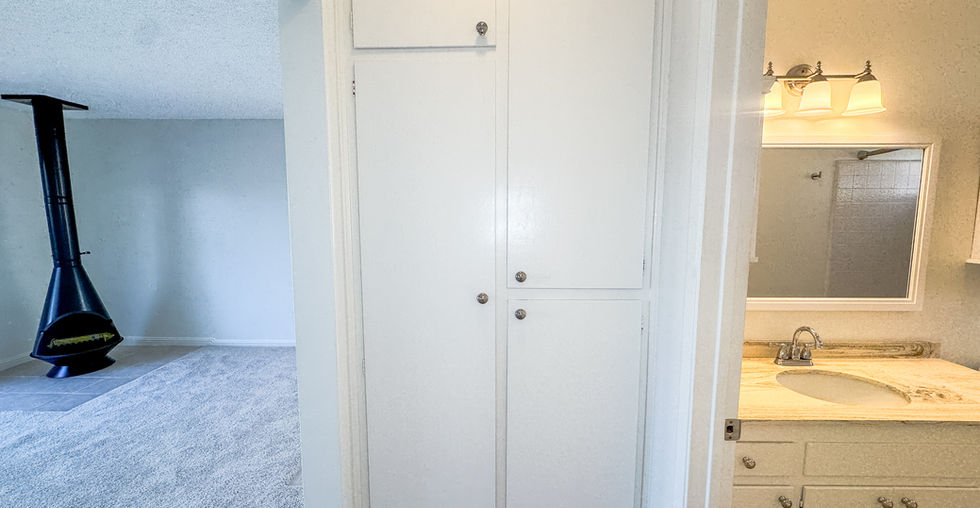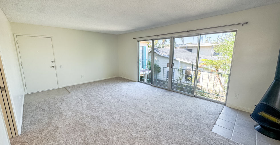 Spacious upper-level one-bedroom unit with fresh paint, new carpet, and a private garage—what more could you want? Enter a large living area featuring a double door patio slider, a cozy fireplace, and ample space for furniture. The dining area, with its own lighting, is adjacent to the kitchen, which offers plenty of cabinetry, a new stove, and a spacious refrigerator. The hallway boasts floor-to-ceiling cabinets for extra storage and includes a pocket door for privacy. The bedroom features a large window and a closet that spans the entire length of the room. The separate bathroom includes a large vanity, additional storage cabinets, and a shower/tub combo. Includes a detached one car garage and onsite laundry.