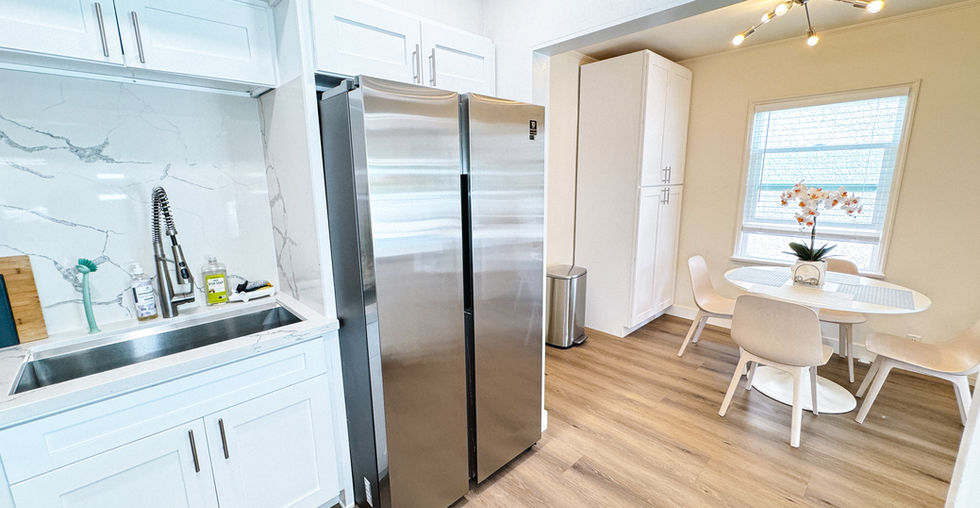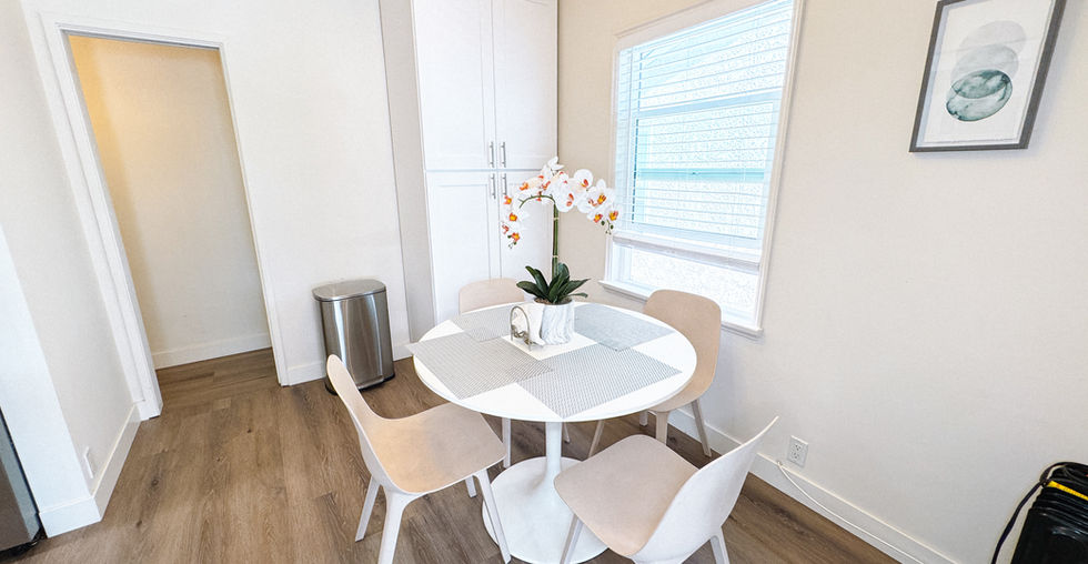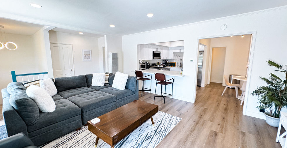 Welcome to this spacious 2-bedroom residence, with an additional office or den, situated less than one block from the beach! Located at 1505 Ocean Ave, this upper unit sits above garages and boasts a generous rooftop deck where you can enjoy the ocean breeze. Step inside to discover a fully remodeled and fully furnished home. The primary bedroom offers a king-size bed, a private renovated bathroom, and ample closet space. The living room is equipped with an oversized sectional sofa, an electric fireplace, and access to the outdoor deck through double doors. The remodeled kitchen features high-end stainless steel appliances, a breakfast bar, and a nearby dining area. Continuing down the hallway, you'll find a second updated bathroom, a bedroom with two twin beds, and a third room that can serve as a laundry room or office. On the ground floor, there is a charming entryway, additional storage for beach essentials, and access to the detached garage with two indoor parking spots and a third outdoor space behind the garage.