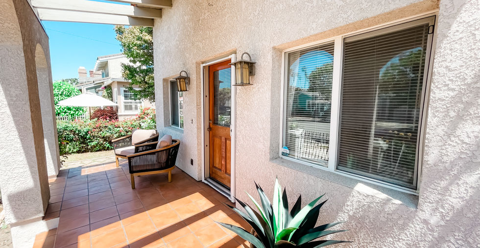 Perfect location, just 2 blocks from both the beach and Main Street, with a large front patio to take in the ocean breeze. This home is surrounded with windows to bring in natural light with hardwood floors throughout. Kitchen includes all appliances (fridge, stove, microwave, dishwasher) with granite counters and garden window. Two bedrooms, both similar in size, are equipped with plenty of windows and ceiling fans. Separate laundry area with exterior access leading to your two-car tandem garage with additional storage space.