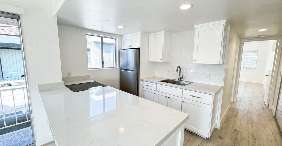 Newly remodeled upper unit in great location! This spacious home just had a huge upgrade with brand new hard surface flooring, fully redone kitchen, new recessed lighting, blinds, and closets! Walk into a cozy living room with fireplace and balcony with room for a bistro set overlooking the open kitchen with bar seating for 4, new appliances, all new cabinetry, countertops, and plumbing. A hallway includes a spacious closet leading to the very large bedroom with vaulted ceiling and even more closet space. The bathroom is roomy with a linen closet and skylight for natural lighting! UTILITIES INCLUDED.
